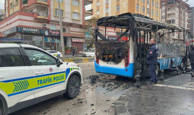 Gaziantep'te seyir halindeyken motor kısmından alev alan şehir içi halk otobüsü tamamen yanarak kullanılamaz hale geldi. Olayda şans eseri yaralanan olmadı.