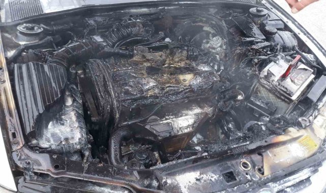 Seyir halindeyken alev alan otomobil kullanılamaz hale geldi