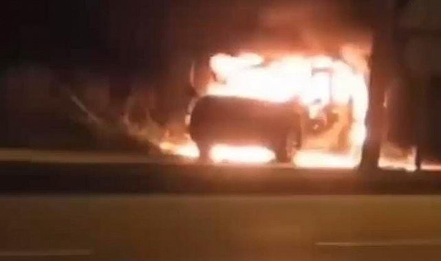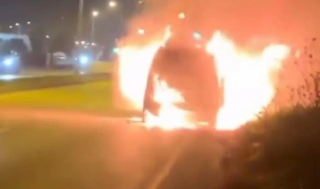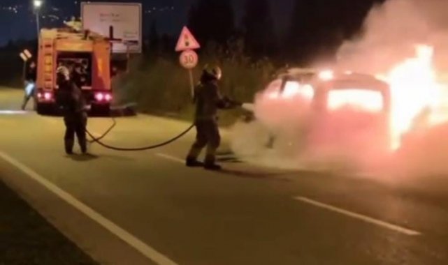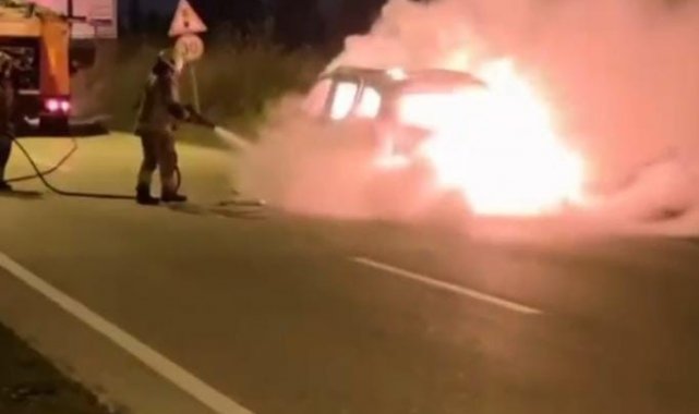 Seyir halindeyken alev alan otomobil kullanılmaz hale geldi
