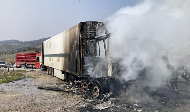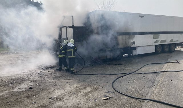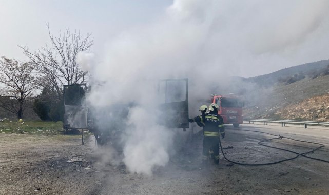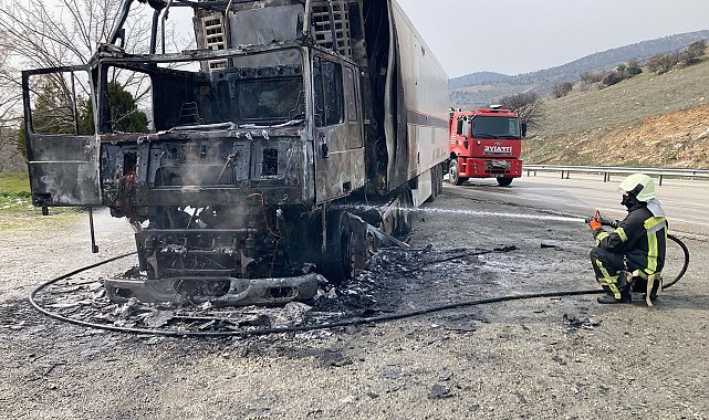 Yangın saat, 12.30 sıralarında İzmir - Ankara D300 kara yolu Kovukdere Rampaları'nda meydana geldi. Edinilen bilgiye göre İzmir istikametinden Uşak istikametine seyir halinde olan Azerbaycan uyruklu Mahmudov Tural idaresindeki 90 ZJ 186 plakalı tır, Kovukdere mevkiine geldiğinde henüz neden çıktığı bilinmeyen bir sebeple alev aldı. Aracından duman çıktığını gören tır şoförü aracını yol kenarında bulunan cepte durdurdu. Araçtan yükselen dumanları gören vatandaşların 112 Acil Çağrı Merkezi'ne bildirmesi üzerine olay yerine itfaiye ve jandarma ekipleri sevk edildi. Kısa sürede olay yerine varan itfaiye ekiplerinin yangına müdahalesi sonucu yangın daha fazla büyümeden kontrol altına alındı. Yangın sonucu tır kullanılamaz hale geldi. Alev alan tır kullanılamaz hale gelirken tırın sürücüsü yangını yara almadan atlattı.