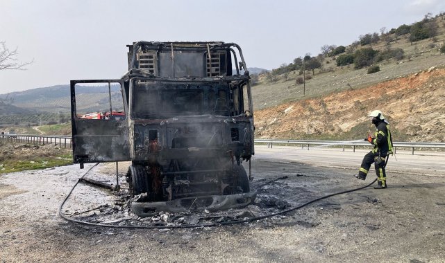 Manisa'nın Kula ilçesinde seyir halindeyken alev alan tır kullanılamaz hale gelirken şoför yangını yara almadan atlattı.