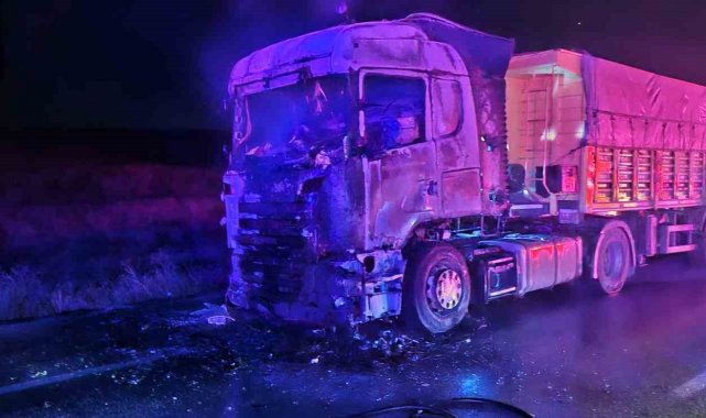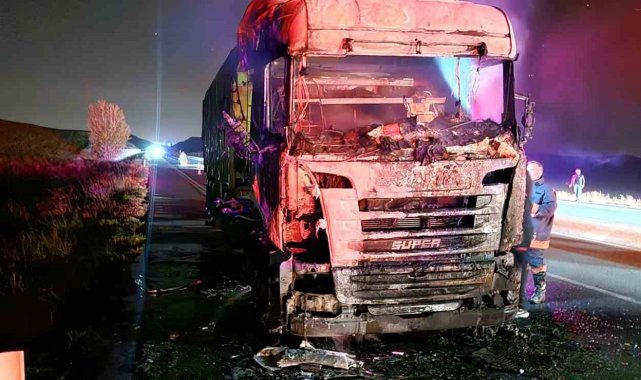 Seyir halindeyken alevlere teslim olan tır kullanılmaz hale geldi