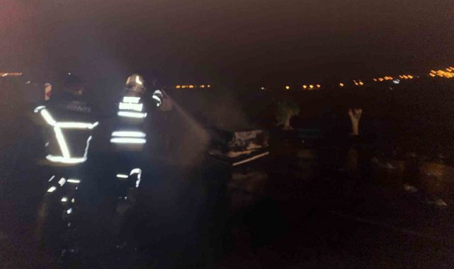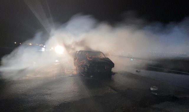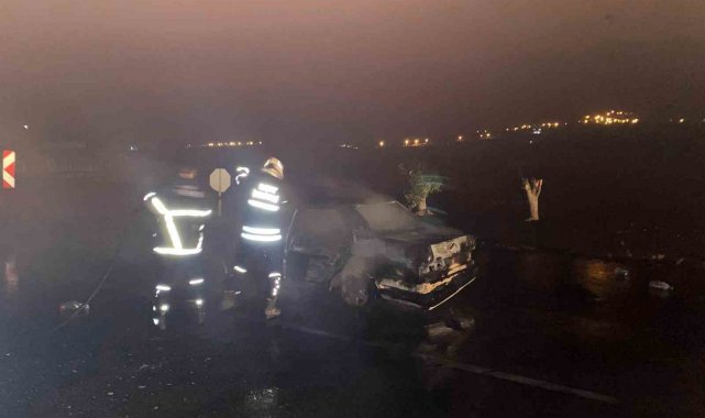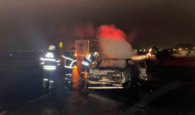 Hatay'da seyir halindeyken alevlere teslim onarak yanan TOFAŞ marka otomobil kullanılmaz hale geldi.