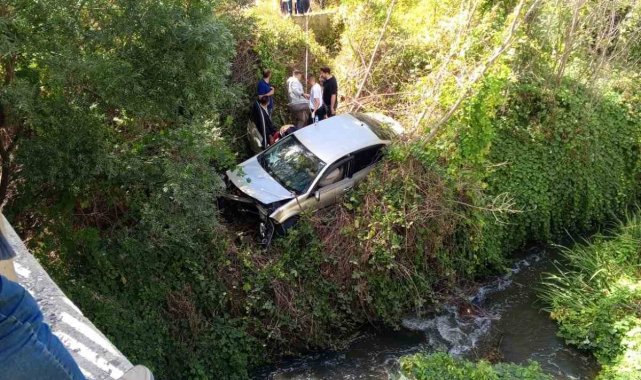 Bilecik'te seyir halindeyken bir tekerleğinin fırlaması sonucu kontrolden çıkan otomobil dere yatağına uçarken 1'i ağır 2 kişi yaralandı.