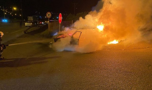Seyir halindeyken yanmaya başlayan Tofaş otomobil alevlere teslim oldu