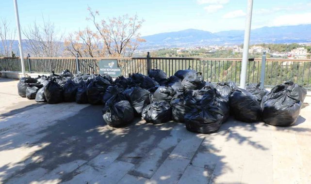 Seyir terasında gerçekleştirilen temizlik çalışmalarında torbalarca çöp toplandı