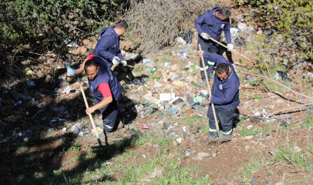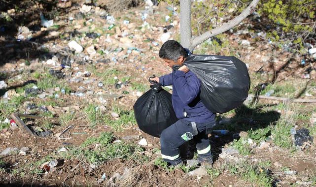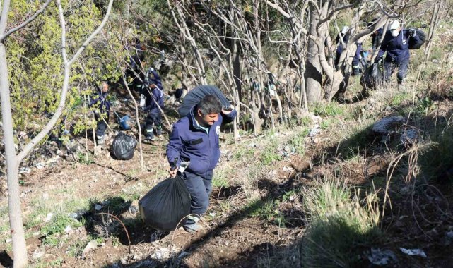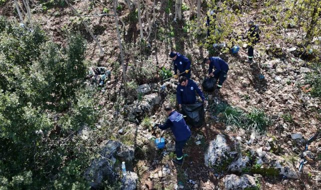 Hatay Büyükşehir Belediyesi ekiplerince seyir terası mevkisinde gerçekleştirilen temizlik çalışmasında torbalarca çöp toplandı.