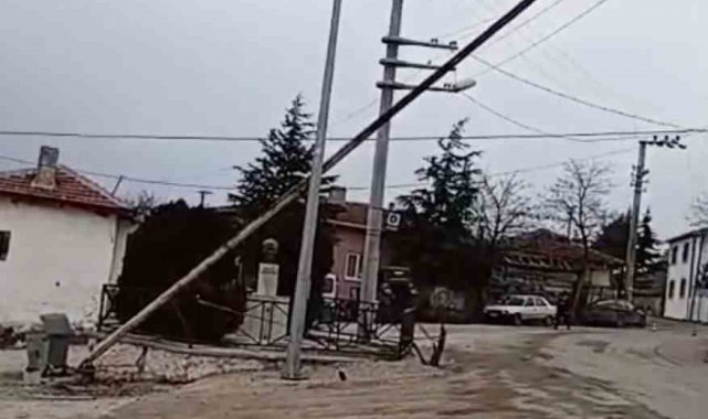 Eskişehir'in Seyitgazi ilçesinde fırtınanın etkisiyle devrilen 30 metrelik bayrak direği, elektrik tellerine çarparak büyük tehlike oluşturdu.