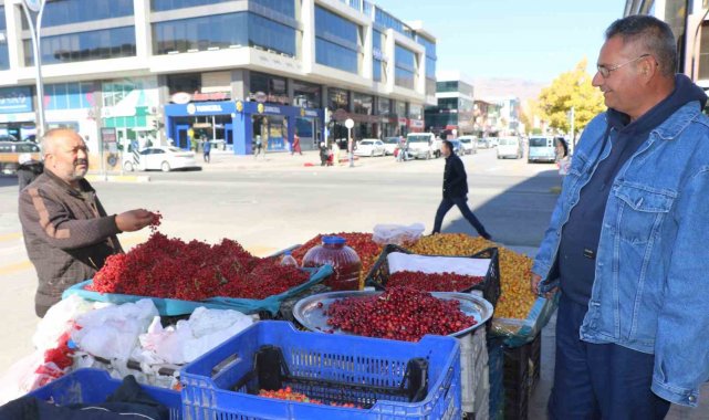 Tezgâhında kızılcık, alıç, gilaburu gibi Erzincan'ın dağlarında yetişen sezonun son bitkilerini satışa sunan seyyar satıcı İsa Kurt, vatandaşlara bitkilerin sağlığa olan faydalarını anlattı.