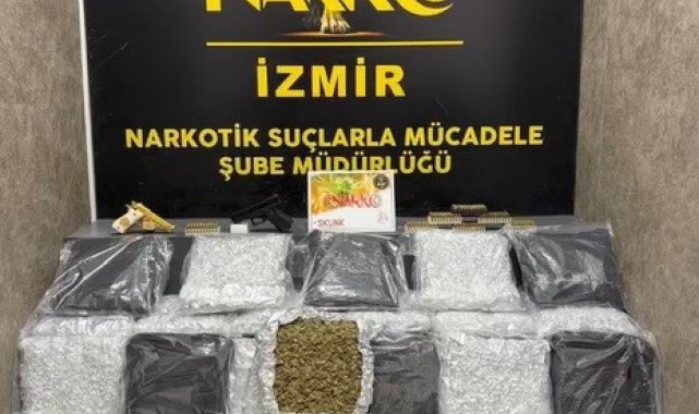 İzmir Narkotik Suçlarla Mücadele Şube Müdürlüğü ekipleri, İzmir Cumhuriyet Başsavcılığı koordinesinde yürüttükleri çalışmada, Konak ilçesinde bir iş yerinde uyuşturucu madde bulunduğu bilgisi üzerine harekete geçti. Belirlenen iş yeri adresi ve bir araçta yapılan aramalarda, seyyar pazarcılık yaptığı öğrenilen Y.E.'ye ait 39 kilo 600 gram skunk esrar maddesi ile 2 adet tabanca ve 730 adet tabanca fişeği ele geçirildi.