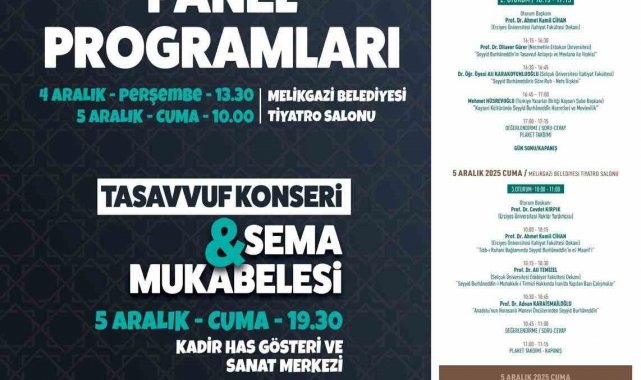 Kayseri Büyükşehir Belediyesi, Kayseri Valiliği ve Birlik Vakfı iş birliğinde Seyyid Burhaneddin'in 781. vefat yıl dönümü dolayısıyla 4-5 Aralık tarihlerinde 'Seyyid-i Sırdan' temasıyla Anma Programı düzenlenecek.