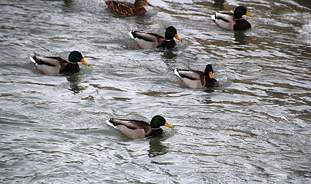 Bayburt'un simgelerinden biri haline gelen yeşilbaşlı ördeklerin sayısında her geçen yıl artış yaşanırken, vatandaşlar da ördekleri yemleyerek destek oluyor. Çoruh Nehri'nin Kaleardı Mahallesi mevkisinde yoğun olarak görülen ördekler, buz tutmuş alanlarda suya dalıp çıkarak görsel bir şölen sunuyor.