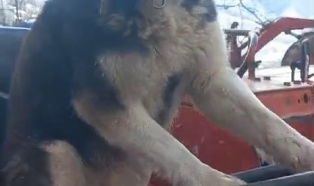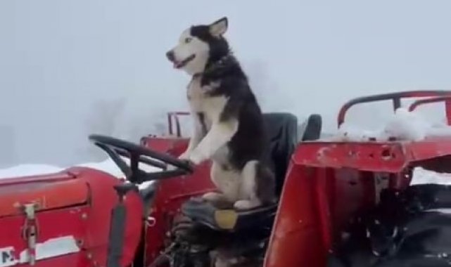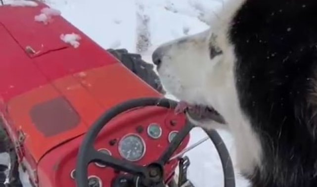Sibirya kurdu traktörün direksiyonuna geçti: O anlar kamerada