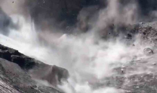 Sıcak hava dalgası Ağrı Dağı'nda kaya düşmelerini tetikledi. Büyük gürültülerle yuvarlanan kayalar toz bulutları oluşturdu.