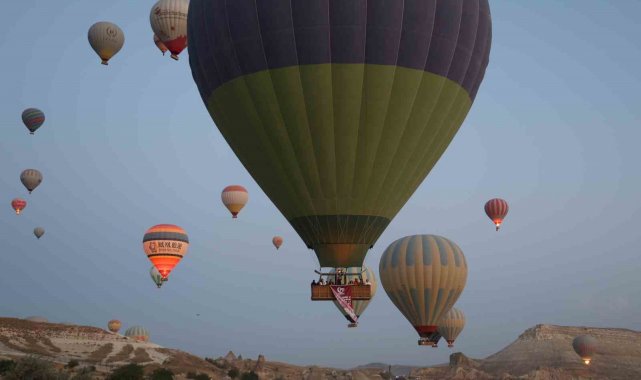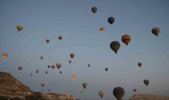 Peribacaları ve doğal kaya oluşumları ile birbirinden farklı vadiler üzerinde süzülen balonlar yaklaşık 1 saat boyunca Kapadokya semalarında uçtu.