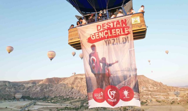Sabah erken saatlerde Nevşehir'in Avanos ilçesine bağlı Paşabağları ve Zelve Ören yerinden havalanan sıcak hava balonlarının sepetlerine Türk Bayrağı, Atatürk posteri ve 15 Temmuz'u anlatan pankartlar asıldı. AK Parti Nevşehir Gençlik Kolları da sıcak hava balonuna üzerinde "Destan Gençlerle Yazıldı' yazılı pankart astı. AK Parti Nevşehir Gençlik Kolları Başkanı Necati Yurtbilir gazetecilere yaptığı açıklamada "15 Temmuz, bu milletin iradesine ve bağımsızlığına yönelen en büyük tehditlerden birine karşı, canı pahasına verdiği eşsiz bir mücadeledir. O gece, tanklara, silahlara karşı göğsünü siper eden milletimiz; destanı yeniden yazdı. Bu destan, özellikle gençlerin cesaretiyle, kararlılığıyla ve inancıyla daha da anlam kazandı. Biz de AK Parti Nevşehir Gençlik Kolları olarak, şanlı direnişin sembolü olan 15 Temmuz'u unutmadık, unutturmayacağız. Bu yıl, Kapadokya'nın semalarında dalgalanacak pankartımızla, 'Destan Gençlerle Yazıldı' mesajını bir kez daha tüm Türkiye'ye haykırmak istiyoruz" ifadelerini kullandı.