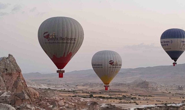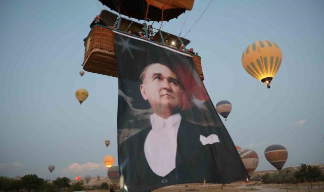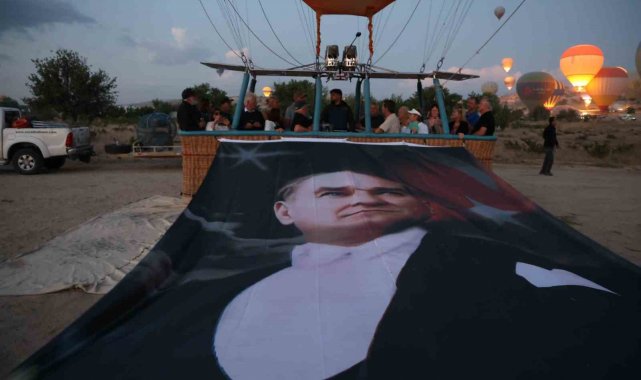 Kapadokya bölgesindeki sıcak hava balonları, 30 Ağustos Zafer Bayramı dolayısıyla uçuşlarını Türk bayrakları ve Atatürk posterleri ile gerçekleştirdi.