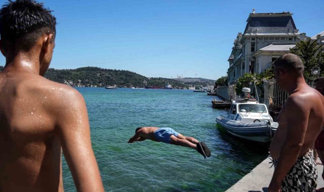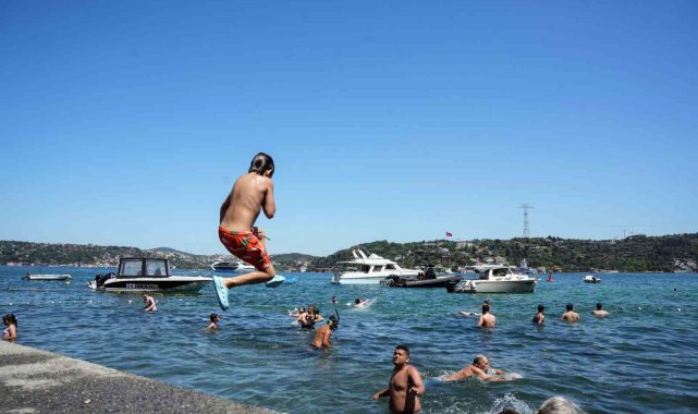 İstanbul'da termometreler 39 dereceyi gösterirken, sıcaktan bunalan vatandaşlar Beşiktaş'ta denize girerek serinledi. Vatandaşların sıcak havada Boğaz keyfi havadan görüntülendi.