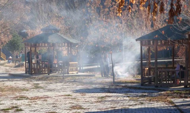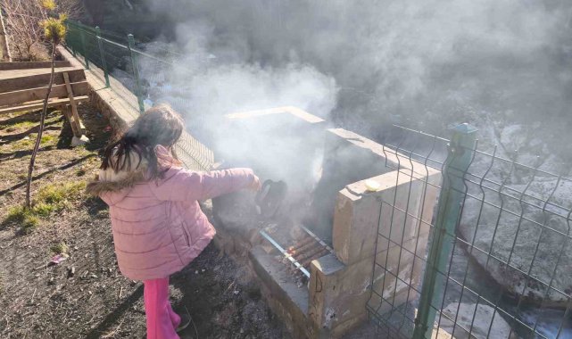 Havanın sıcak ve güneşli geçtiğini belirten çocuklardan Kerem kaya, adeta bahar günlerini yaşadıklarını, mangal yaparak güneşli günlerin tadını çıkardıklarını söyledi.