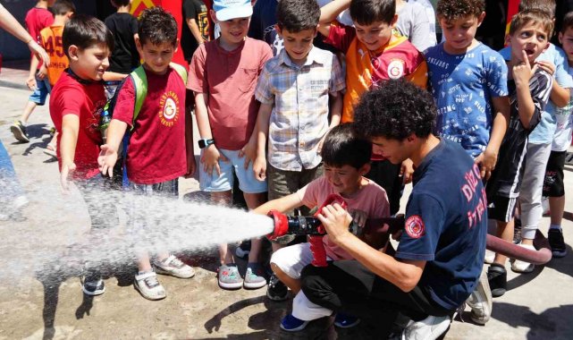 İtfaiye Müdürü Mehmet Ali Kahraman'ın da hazır bulunduğu ziyarette, itfaiye araçlarını ve itfaiye personelinin kullandığı aletleri inceleyen çocuklar daha sonra yangına müdahale tekniklerini uygulamalı öğrendi.