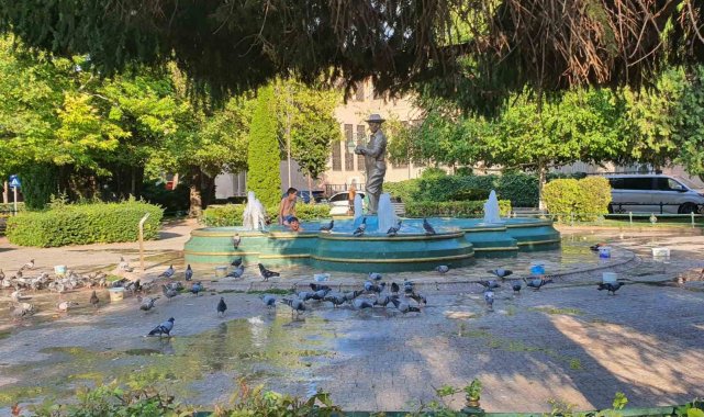 Eskişehir'de sıcak havadan bunalan çocuklar süs havuzuna girerek tehlikeli olmasına rağmen süs havuzuna girerek serinlemeye çalıştı.