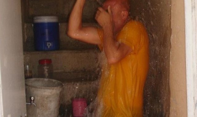 Sıcaklığa dayanamadı kafasından aşağı kovayla su döktü