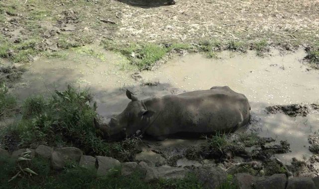Hayvanat bahçesindeki diğer hayvanların bazıları sıcaktan korunmak için sürekli gölge alanları seçerken, beyaz gergedanların ise çamurlu su birikintisine girerek serinlemeye çalışması dikkat çekti.
