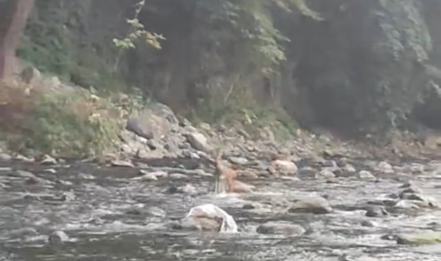 Şiddetli sıcaklar insanlar kadar yabani hayvanları da etkiliyor. Düzce'de serinlemek için Gölyaka Değirmentepe mevkiine giden vatandaşlar dere içerisinde vakit geçirdikleri esnada ormandan dereye bir karaca girdi. Bölgede serinleyen vatandaşlara aldırış etmeden suyun içerisinde uzun süre kalan karaca, daha sonra vatandaşların kendisini çağırdığını görünce ormanlık alana girerek gözden kayboldu. O anlar bölgede bulunan vatandaşlar tarafından saniye saniye kayıt altına alındı.