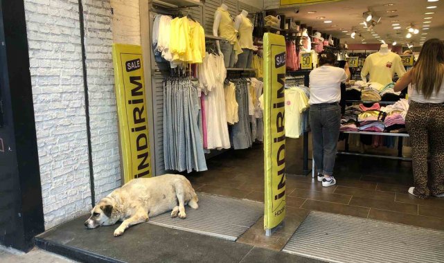 Mevsim normallerinin üzerinde seyreden sıcaklıklar sadece kentte yaşayan vatandaşları değil sokak hayvanlarını da etkisi altına aldı. Bir sokak köpeği sıcaktan bunalıp serinlemek için İki Eylül Caddesi'nde bulunan bir giyim mağazasının giriş kapısının önüne yattı. Kapının üzerindeki klimadan faydalanan köpeğin uzun süre yatması ise müşterilerle samimi görüntüleri ortaya çıkardı. İşletme önünden geçen vatandaşlarında ilgisini çeken köpek gün boyu klimanın tadını çıkardı.