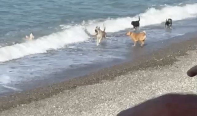 Kastamonu'nun Çatalzeytin ilçesinde, grup halindeki sokak köpekleri serinlemek için denize girdi. Uzun süre denizde yüzen ve sahilde koşan köpekleri gören vatandaşlar ise o anlar cep telefonlarıyla görüntüledi. Renkli anlara sahne olan görüntülerde, köpeklerin denizde yüzdüğü ve dalgaların önünde koşarak oynadıkları görülüyor.