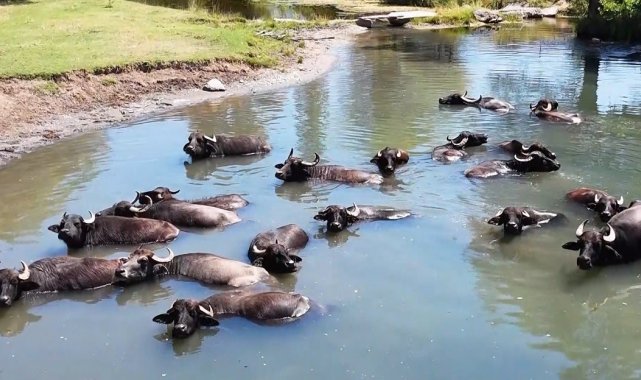 Abdullah isimli çoban işini severek yaptığını anlatarak, "Her sabah köydeki mandaları meydanda topluyorum ve çayırlarda otlatıyorum. Elbette mandaların en büyük ihtiyacı su ve su banyosu. Bu olmazsa olmaz. Çok keyif alıyorlar. Su banyosunun zamanını mandalar ayarlıyor. İhtiyaçları olduğunu anlıyorum ve dere kenarına götürüyorum. Sudan ne zaman çıkacaklarına yine onlar karar veriyor. Serinlemek ve su içinde olmak onlara keyif veriyor. Ben de onları izleyerek dinleniyorum. Hayvanların suya girmesi süt verimini artırıyor. Suda temizleniyorlar" diye konuştu.