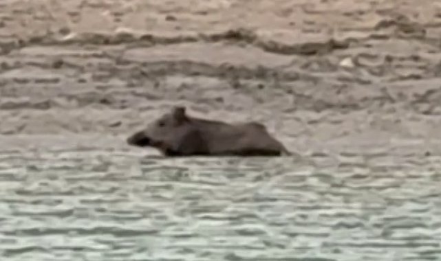 Türkiye'nin en sıcak illerinden Adana'da sıcaktan bunalan bir yaban domuzu, Seyhan Baraj Gölü'nde serinledi. O anlar cep telefonu kamerasına saniye saniye yansıdı.