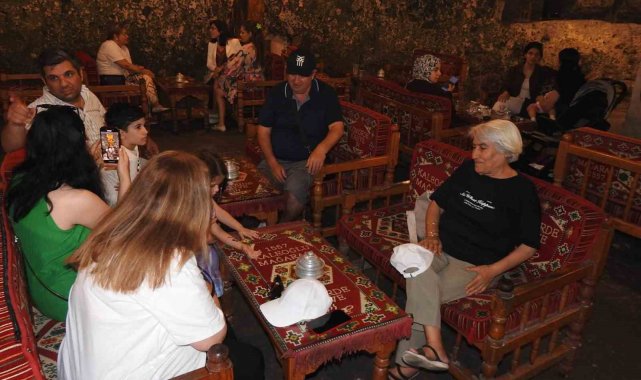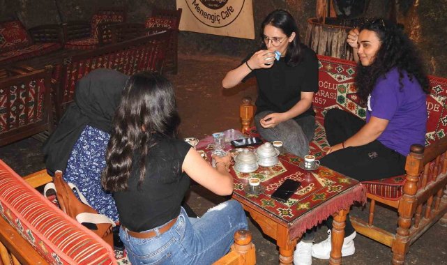 Hava sıcaklığının bazen 40 dereceyi bulduğu kentte, yerli ve yabancı turistler doğal serinliği nedeniyle mağaradaki kafeye geliyor.