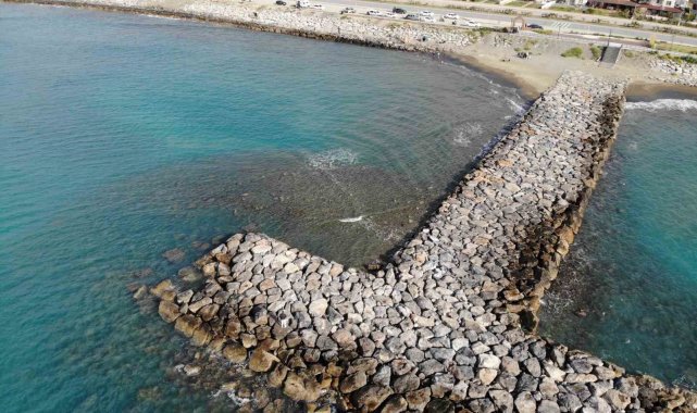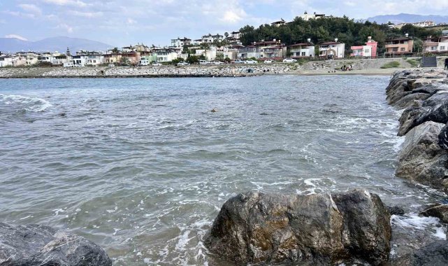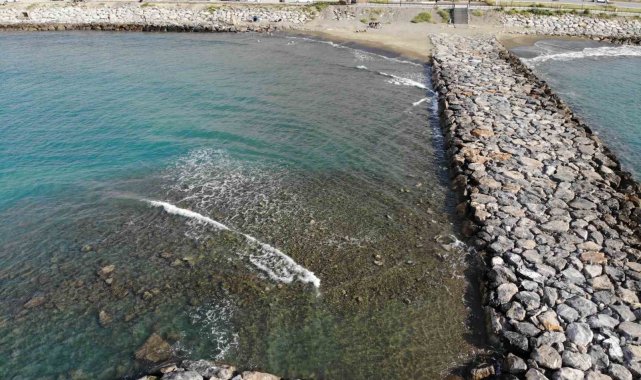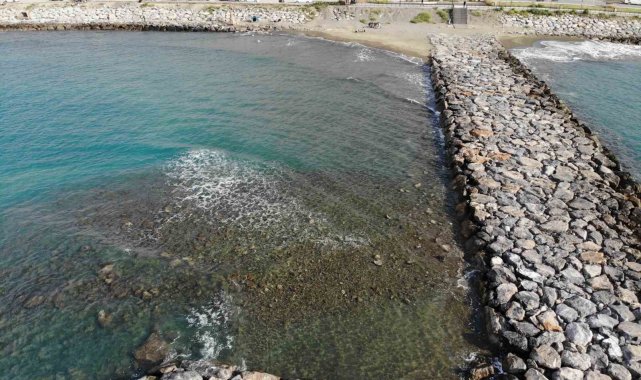 Hatay'da şiddetli fırtına nedeniyle 20 metreyi bulan deniz çekilmesinin yaşandığı Arsuz ilçesinde deniz seviyesi normale dönmeye başladı. Deniz seviyesinin yükseldiği bölge dronla görüntülendi.
