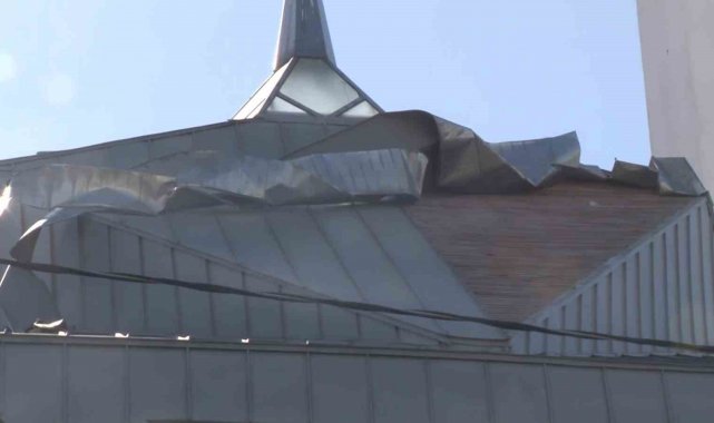 İstanbul'da etkili olan şiddetli rüzgar nedeniyle Ataşehir'de bulunan Medine Mescidi Camii'nin çatısındaki kaplamaların bir kısmı söküldü.