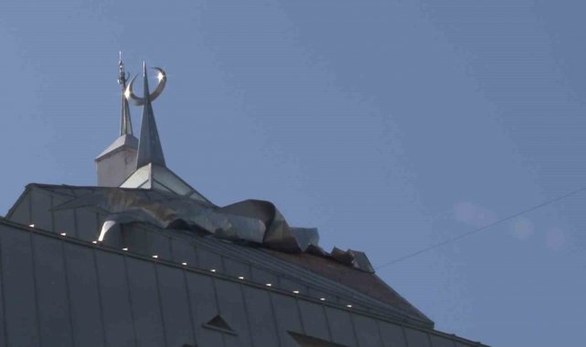 Şiddetli rüzgar nedeniyle Ataşehir'de caminin kaplaması söküldü
