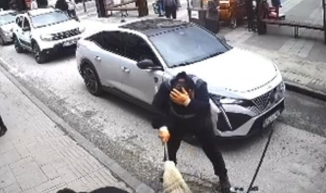 Öte yandan bölgede bulunan bir iş yerinin güvenlik kamerası, olay anlarını kaydetti. Kaydedilen görüntülerde temizlik görevlisi Fahrettin B.'nin cadde üzerinde çalıştığı esnada, tabelanın başına isabet ettiği, elindeki temizlik malzemesinin düştüğü ve aldığı darbe sonucu başını tutarak çömeldiği görülüyor. Bu esnada vatandaşların Fahrettin B.'nin yanına gelerek, yardımcı oldukları anlar da kaydedilen görüntüler arasında yer alıyor.