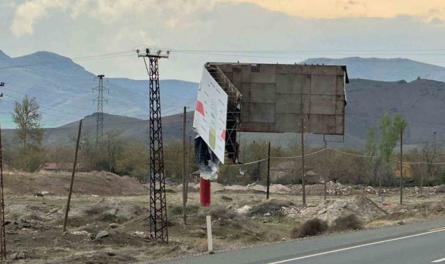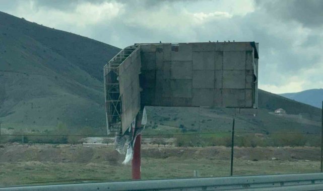 Meteorolojinin uyarısını yaptığı şiddetli rüzgar Elazığ'da etkili oldu. Bazı ilçelerde dolu yağışının da etkili olduğu kentte Kovancılar karayolu Çağlar mevkiinde bulunan dev reklam panosu da şiddetli rüzgardan nasibini aldı. Fırtına nedeni ile devrilen pano, kullanılamaz hale gelirken, bazı uyarı levhalarının da yerinden söküldüğü görüldü.
