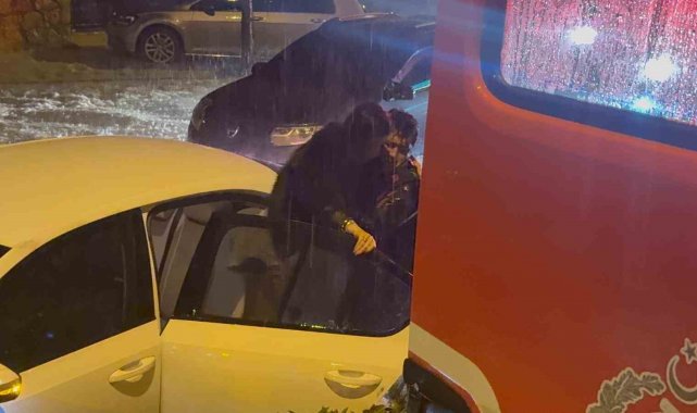 Şiddetli yağış sele döndü, araçlarında mahsur kalan vatandaşları itfaiye kurtardı