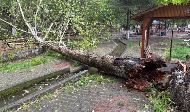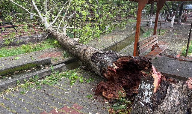 Şiddetli yağmur ve fırtına tarihi çınar ağacını gövdesinden kırdı