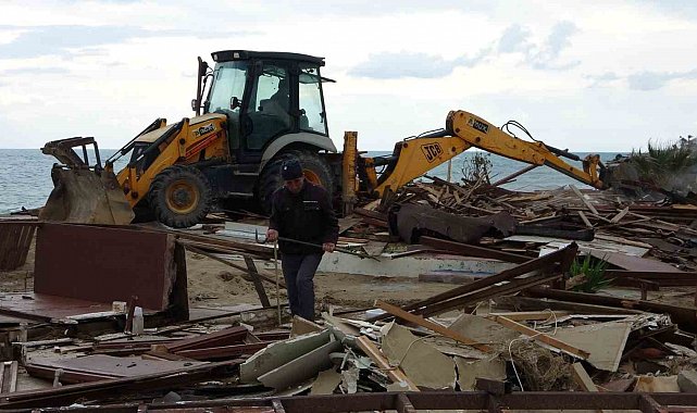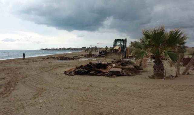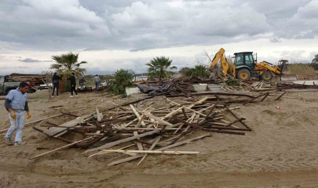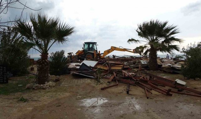 Antalya'nın Manavgat ilçesinde Side büyük plajda bulunan 15 günübirlik işletme Kültür ve Turizm Bakanlığı'nın yıkım kararı doğrultusunda işletme sahipleri tarafından yıkıldı.