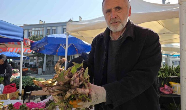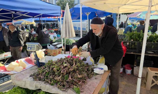 DÜZCE (İHA) – Düzce'nin yüksek kesimleri ve dik yamaçlarında bahar aylarında kendiliğinden yetişen kaldirik otu, köylü pazarlarındaki tezgahlarda yerini aldı.