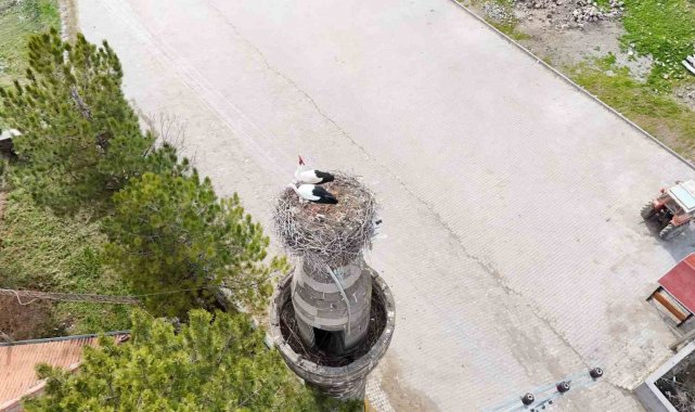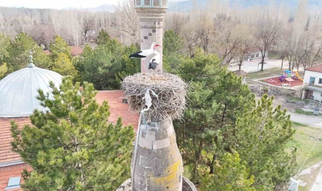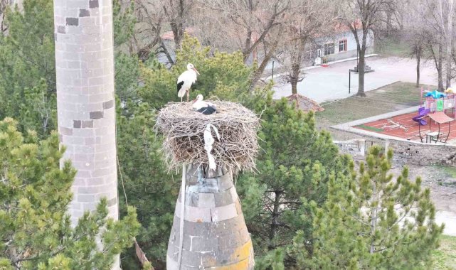 Kayseri'nin Tomarza ilçesine bağlı Şıhbarak Mahallesi'nde her yıl baharın gelişini müjdeleyen leylekler yeniden yuvalarına döndü.