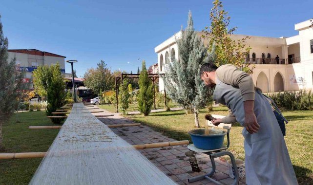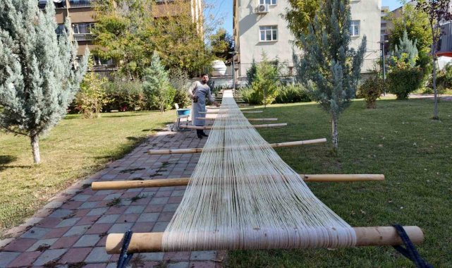 Ustalardan Osman Demir, 9 yıldır şal şepik ustası olduğunu ifade etti. Şal şepik kumaşını dokuyarak ürettiklerini kaydeden Demir, "Birçok aşaması bulunmaktadır. İlk önce masura sarma aşaması. Masura aşaması da çözgüye hazırlıktır. İkinci aşama da çözgü yapımıdır. Çözgü dediğimizde çaprazlama şeklinde oluşuyor. O da çirişleme dediğimiz üçüncü aşama için yapılıyor. Burada da iplerin pürüzsüz hale getirilip daha rahat dokuması, iplerin kopmasını engellemek için yapılıyor. Dördüncü aşama da gücüden ve taraktan geçirme işlemidir. İpler teker teker gücüden geçirilerek dokumaya hazır hale getiriliyor. Sonrasında ipler tezgaha atılarak kumaş dokunuyor. Bu dokuma süresi de 10 günü buluyor. Kumaşın tamamıyla bitmesi 15 günlük bir süreçtir. Dokuma bitikten sonra da kumaş güzelce yıkanır. Yıkandıktan sonra eğer boyama işlemi varsa boyanır. Eğer boyama işlemi yapılmayacaksa çelik levhalara sarılır, kaynadıktan sonra prese verilir. Bir gece preste kaldıktan sonra kumaşımız hazır hale gelmiş oluyor" şeklinde konuştu.