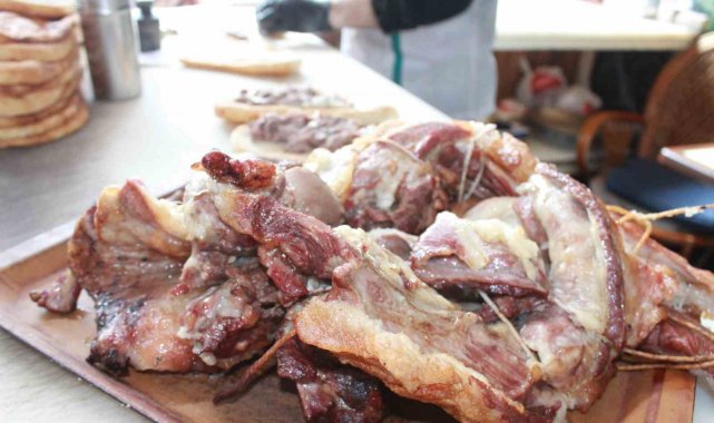 İftara doğru tükendiğini aktaran Kayaalp, "Yayla, mezra gezip büryana elverişli olan 6-7 aylık kuzuları temin edip, kendi dükkanımıza getirebilmek için de 16 saat dinlendikten sonra, gece saat 02.00'de işleme başladığımız büryan kebabını, Ramazan'a özel 08.00'da başlıyoruz, 2 seans yapıyoruz. 1'inci seans Türkiye'nin çeşitli illerine paket yapmak için uğraşıyoruz. 2'nci seans ise iftar vaktine yetiştirmeye çalışıyoruz. Kuzgun kuyularda genelde buhar ateşiyle pişen bir yemek. Ve bunu bu şekilde iftar servislerine sunuyoruz. Yaklaşık 2 buçuk saat tandırda bekliyor. Tandırdaki sirkülasyon ise önce etlerimizi kızartıyor daha sonra da yumuşatmaya başlıyor. Şu anda 100 gramı 250 lira. Kemikli 200 gram 250 lira" diye konuştu.