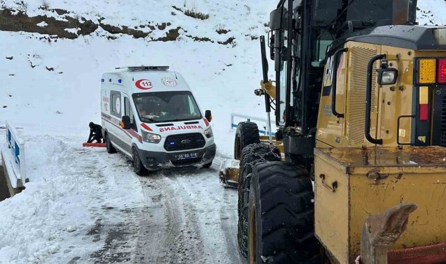 Siirt Özel İdare ekipleri karla kaplı yolları açarken hastaları sağlık ekiplerine ulaştırıyor.
