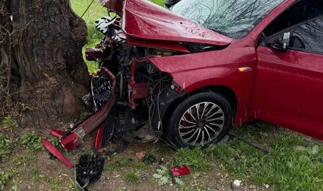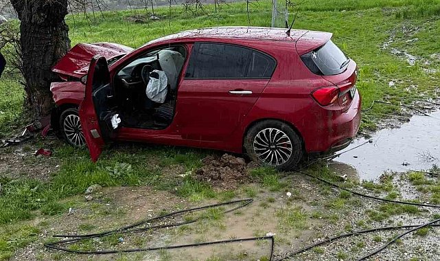 Siirt'te meydana gelen kazada kontrolden çıkarak ağaca çarpan otomobilin sürücüsü yaralandı.