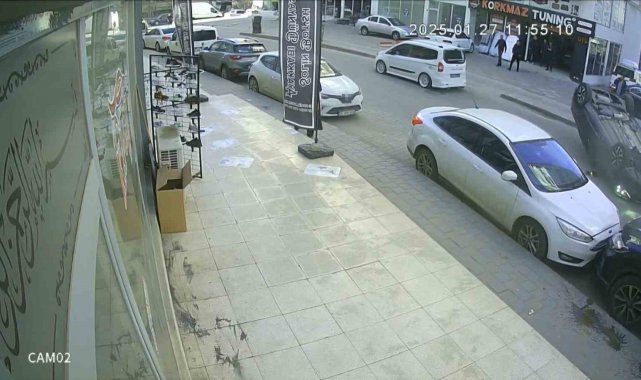 Siirt'te bir otomobil park halindeki başka bir otomobile çarparak takla attı. Kaza anı güvenlik kamerasına yansıdı.