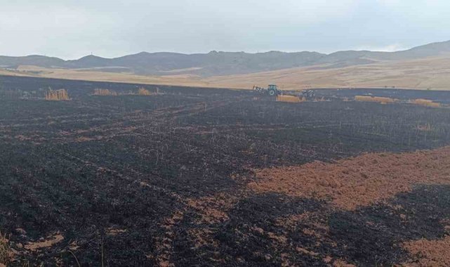 Siirt'te tarlaya yıldırım düşmesi sonucu biçilmemiş buğdaylar küle döndü.