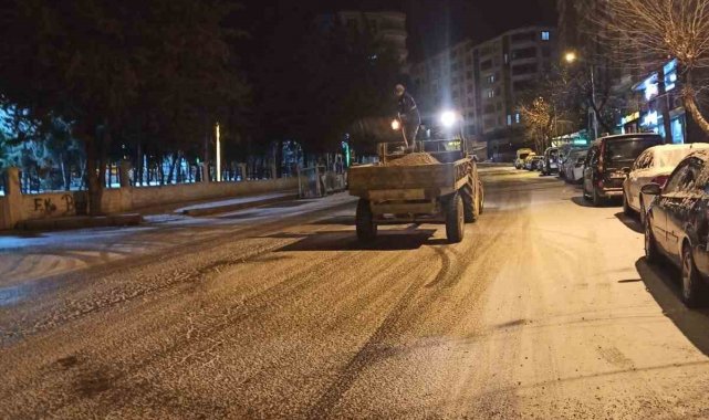 Siirt'te etkisini gösteren kar yağışı sonrası kent genelinde buzlanmaya karşı tuzlama çalışmaları devam ediyor.